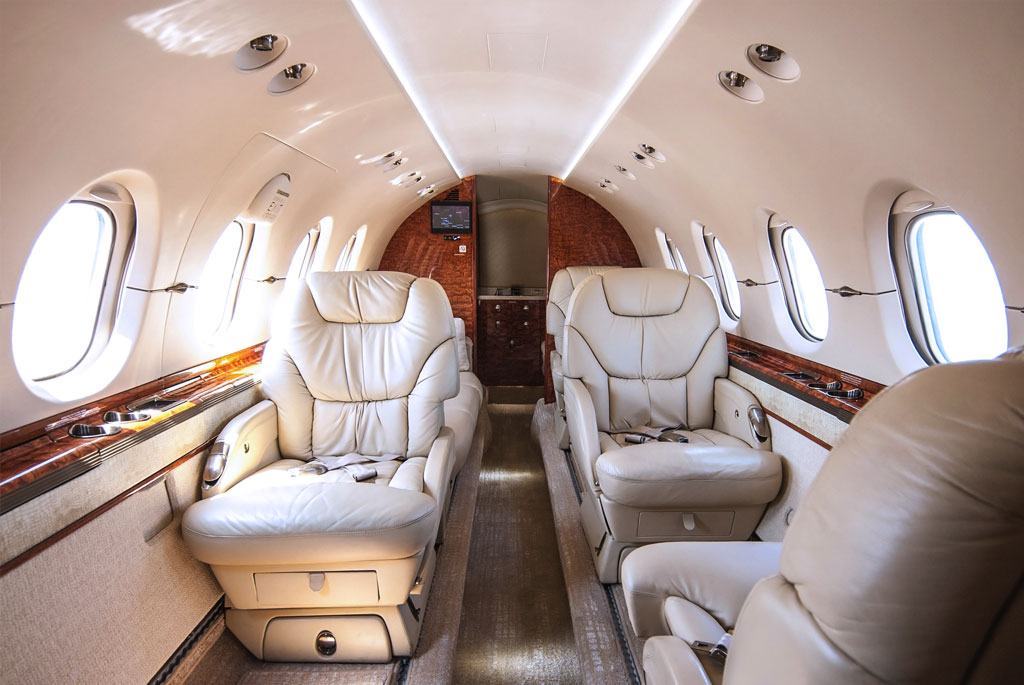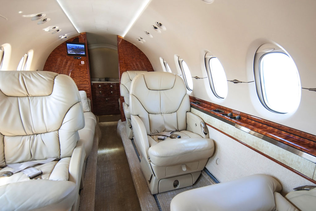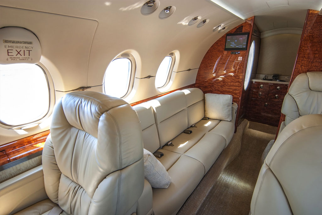 12-17 New Interior Carpet, Lower Sidewalls, and both Divan Seat Leather. Remaining Aft Cabin Seats Redyed and conditioned as new. Ten (10) passenger configuration featuring two (2) club seats right side forward, with two (2) place club left, three (3) place divan right side aft, with two (2) club seats opposite, and a belted lavatory. FWD LH galley, FWD LH coat closet, FWD RH storage closet. All upholstery is leather w/wool carpet and color coordinated sidewalls and trim, recessed lighting. |